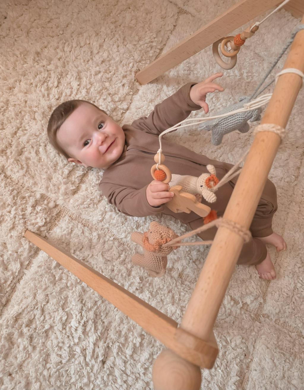 Our wooden play gyms provide endless fun and sensory exploration for little ones, helping them develop essential motor skills while keeping them entertained. Check out these sweet moments shared by happy parents!